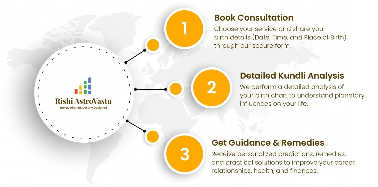 Your Kundli (birth chart) reveals important information about your career, marriage, finances, health, and overall destiny. By studying planetary influences, we can identify the root cause of problems and suggest effective remedies to reduce negative effects and enhance positive outcomes.
